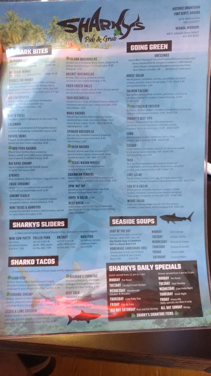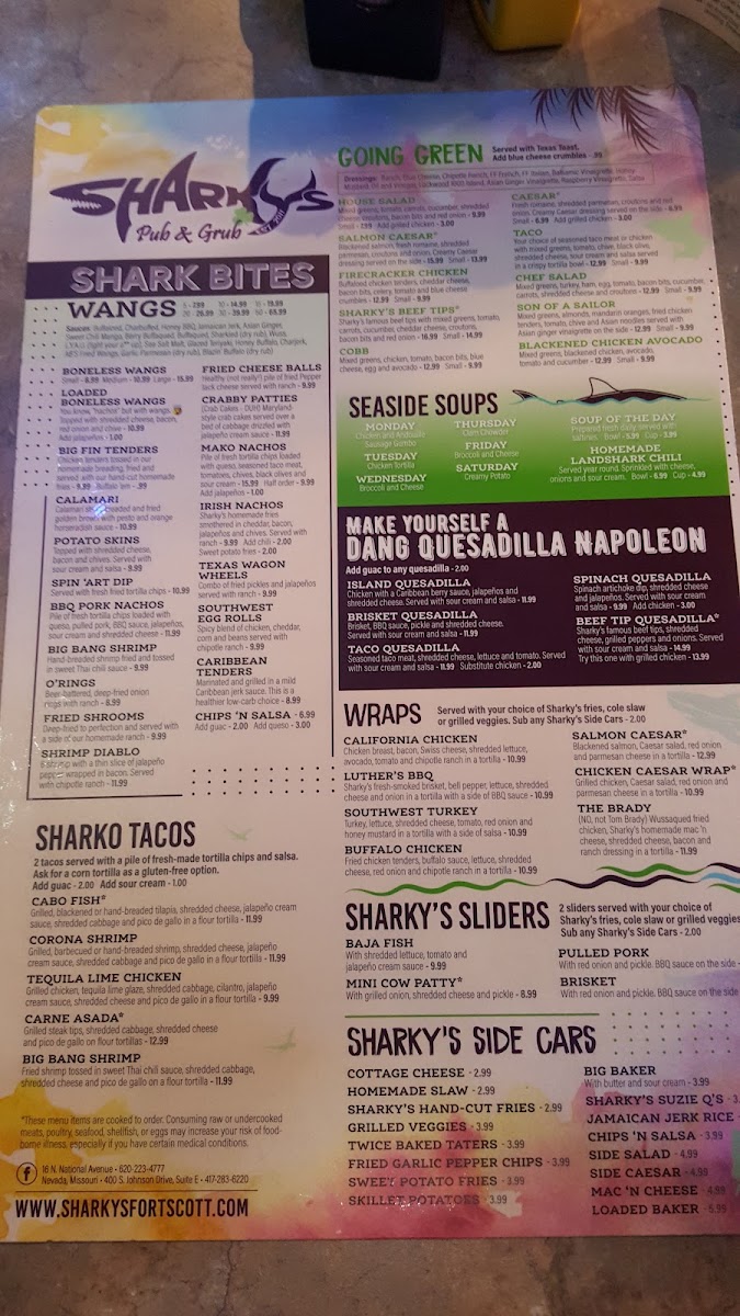 Welcome to Sharky's Pub & Grub, where the vibrant spirit of a sports bar meets the comforting atmosphere of your favorite neighborhood pub. Conveniently located in Fort Scott, Kansas, this eatery boasts an enticing menu that caters to diverse palates.